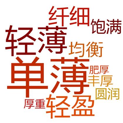 大多數描述酒體的詞匯,看上去都在描述身材。使用也很簡單,從瘦弱的瘦子到健康的瘦子,再從健康的胖子到死胖子……過瘦指的是很寡淡松散,過胖則是油膩呆滯。鑒于大家平時對于描述身材的形容詞都很敏感,我想這里不需要再解釋哪些詞是褒義哪些是貶義: